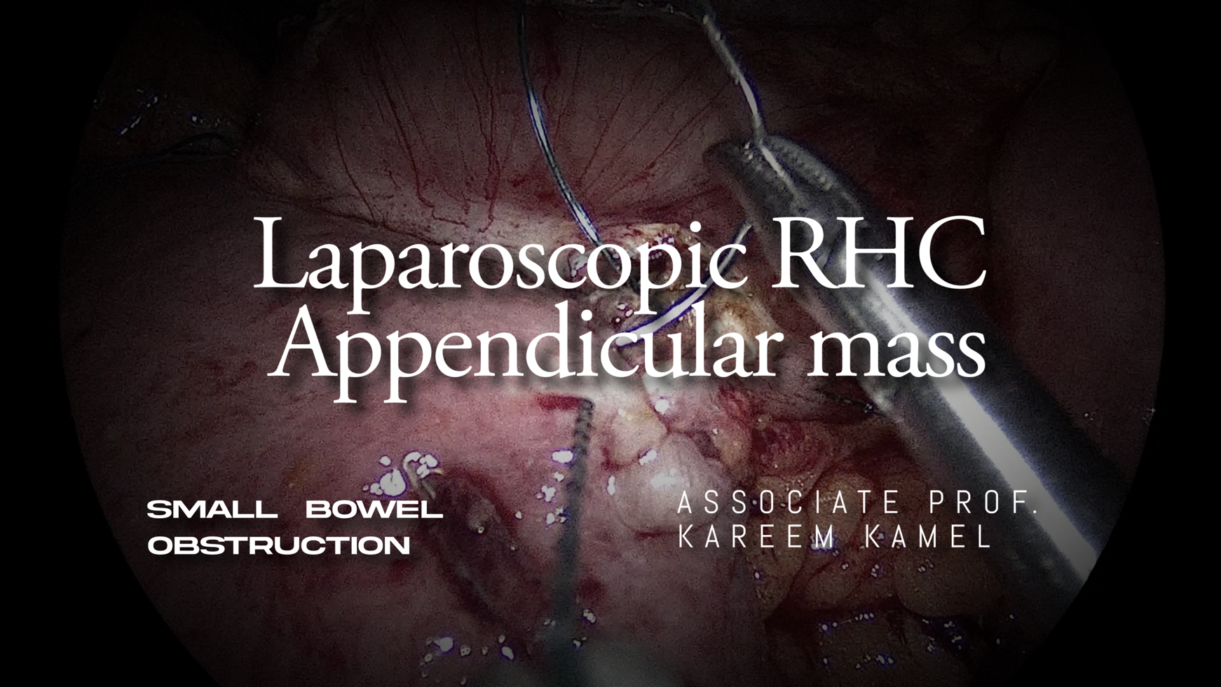 استئصال القولون الأيمن بالمنظار الجراحي نتيجة ورم بالزايدة وانسداد معوي مع اعادة توصيله بالأمعاء
